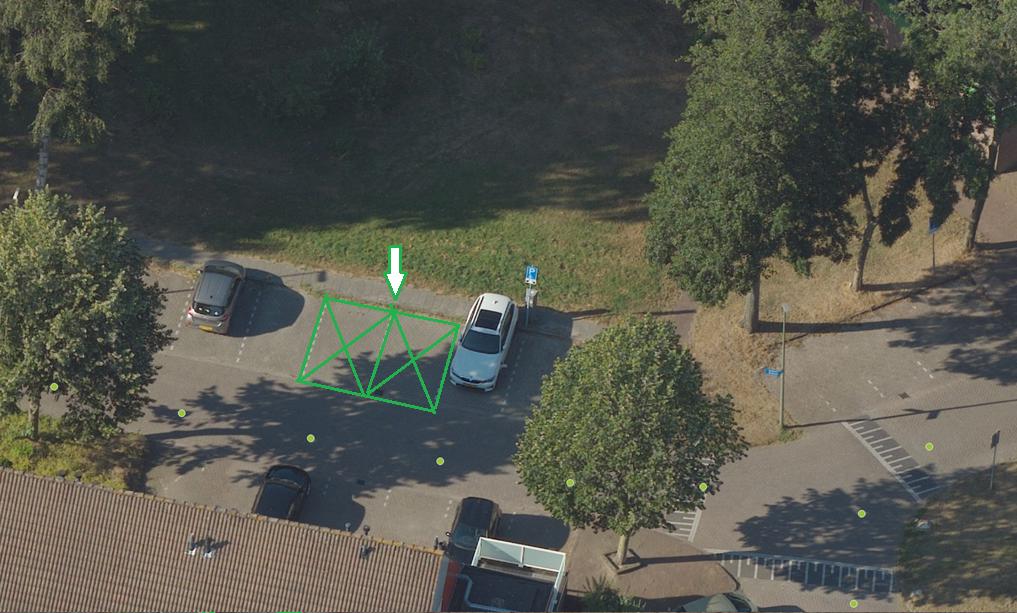 De parkeerplaatsen zijn alleen bedoeld voor het opladen van elektrische auto’s. Daarom plaatsen we het verkeersbord E08c (dit staat in bijlage I van het RVV 1990). We plaatsen ook het verkeersbord OB504 daaronder. Dit is een bord met twee pijlen die wijzen naar de parkeerplaatsen.
