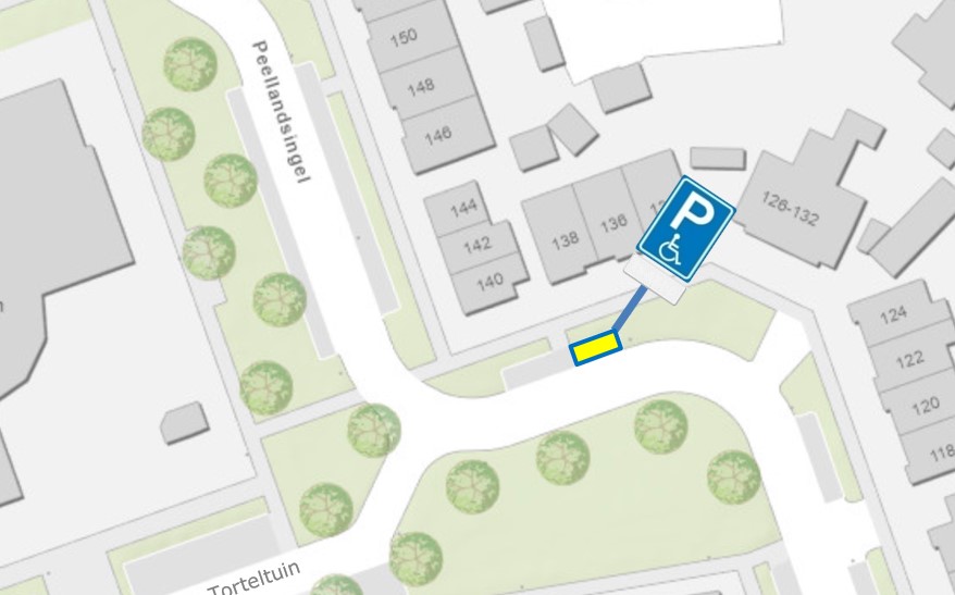 Bewoners van de Peellandsingel 136 hebben verzocht om een individuele gehandicapten-parkeerplaats toe te wijzen nabij hun woning aan de Peellandsingel 136;