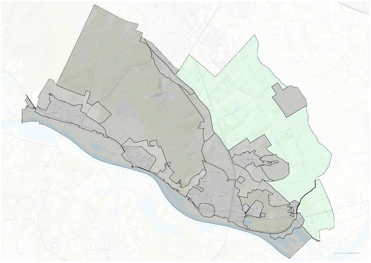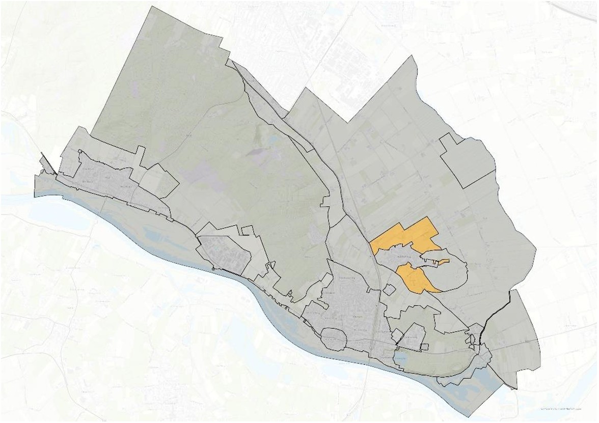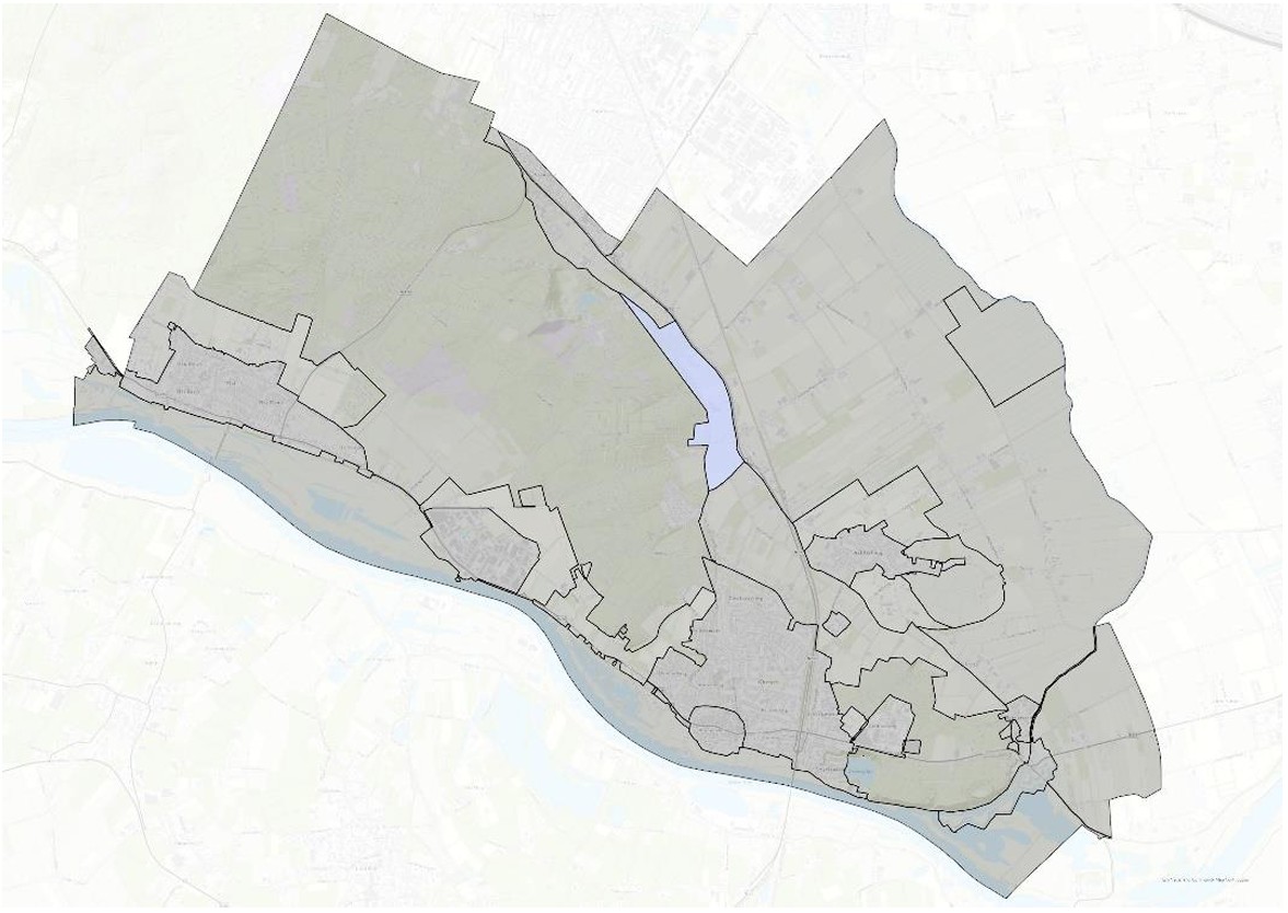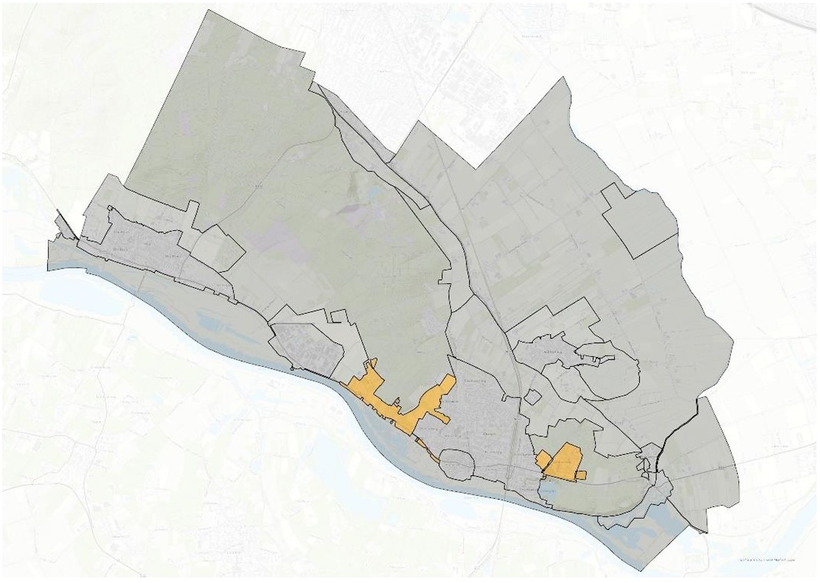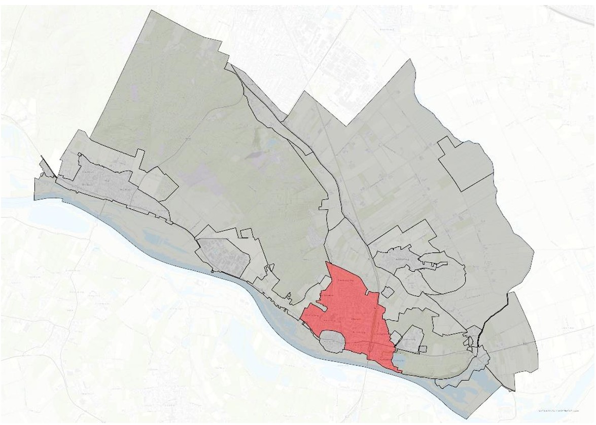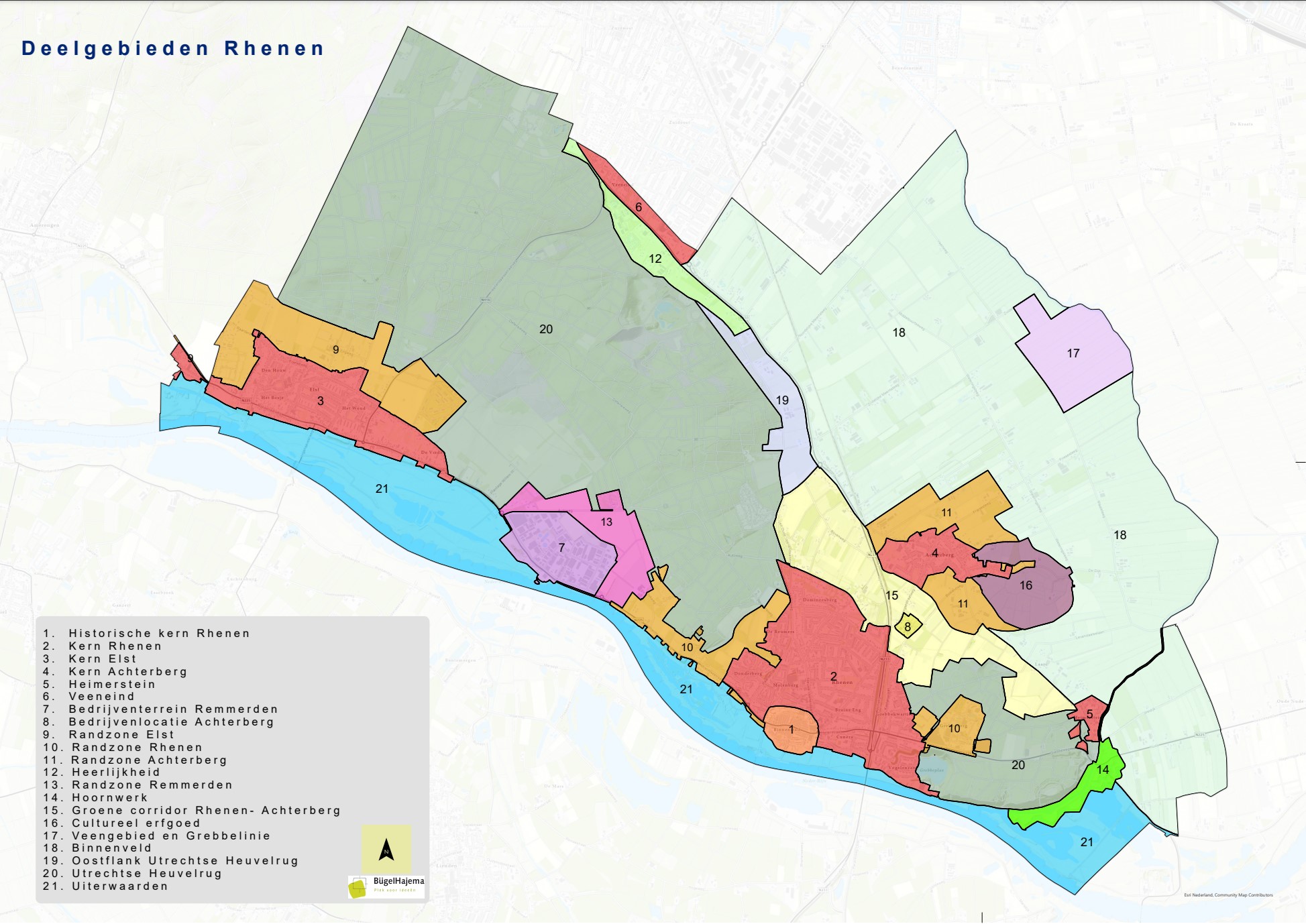 Dichtbebouwde gebieden, hieronder vallen de kernen Achterberg, Elst, Rhenen, het bedrijventerrein Remmerden en de bedrijvenlocatie Achterberg en woonzorglocatie Heimerstein.
