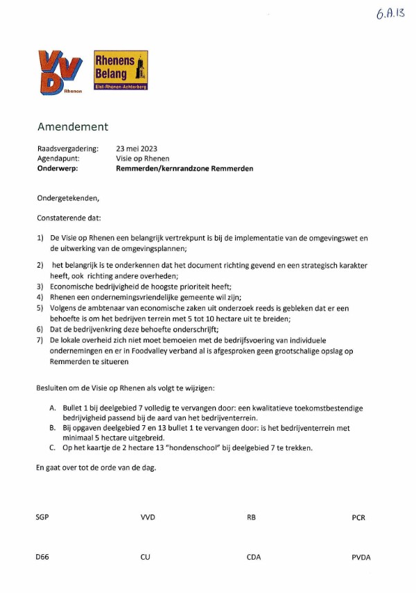 In de Visie op Rhenen is in de randzone Remmerden (D13) tegen Remmerden (D7) aan en aan de rand van het Binnenveld (D18) tegen Veenendaal aan ruimte gemaakt voor nieuwe bedrijven om zich te vestigen. Op Remmerden (D7) zijn de bedrijven gevestigd die minder afhankelijk zijn van goederentransport. Agrariërs hebben in het Binnenveld (D18) de ruimte gekregen om hun bedrijf te runnen met oog voor verduurzaming en lokale voedselvoorziening zonder een rendabele exploitatie uit het oog te verliezen.