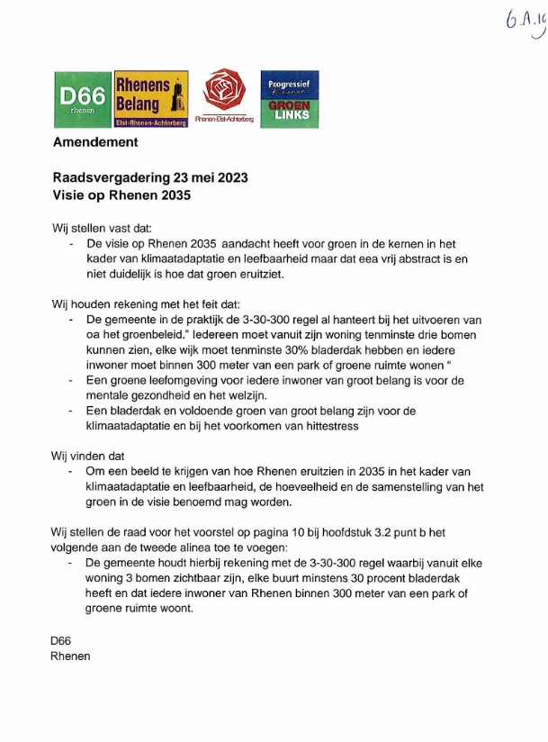 De luchtkwaliteit in Rhenen is verbeterd en het energieverbruik daalt. Er zijn dus meer huizen met zonnepanelen en Rhenam heeft een groot deel van de huurwoningen verduurzaamd tot label A. We hebben van de zomer allemaal in Limburg, België en Duitsland kunnen zien wat er kan gebeuren bij extreme weersomstandigheden. Rhenen loopt ook risico. Er worden meer droge periodes verwacht, maar Rhenen wordt ook natter en dit kan tot wateroverlast leiden. Om hittestress tegen te gaan en water beter te kunnen bergen en vasthouden is onder andere ‘ontstening’ en ‘vergroening’ nodig.