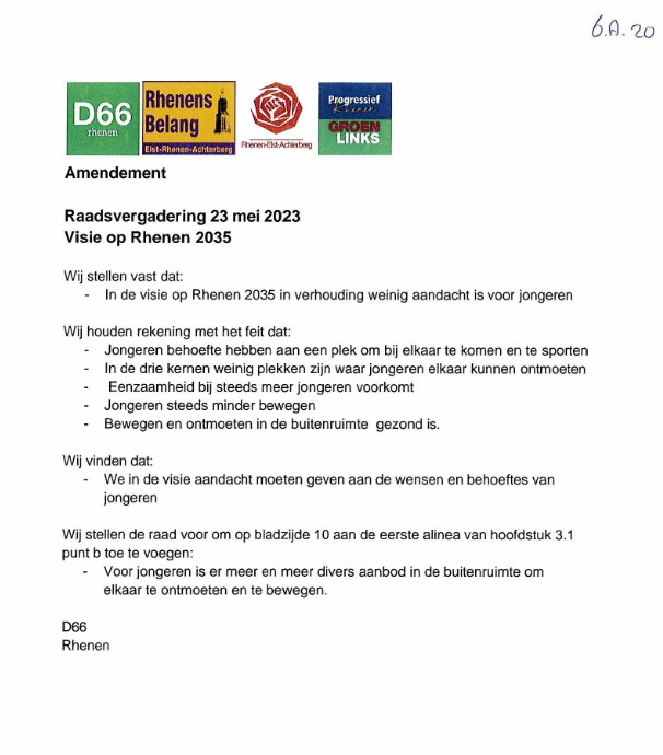 Als jongeren blijven en initiatief nemen, zullen zij meewerken aan culturele projecten, sportevenementen, het onderhouden van het groen. Dat is een kans voor de gemeente. De nieuwe woningen moeten dan wel aansluiten bij de behoeften van jongeren. Dat de Visie op Rhenen inzet op veilige fietspaden en meer en beter openbaar vervoer biedt perspectief voor jongeren.