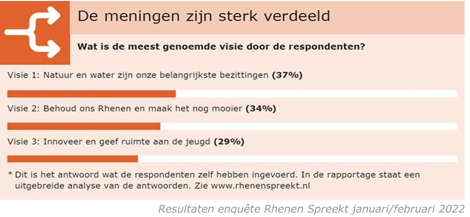 Sinds 1 juli 2021 zijn honderden uitspraken gedaan over de toekomst van de gemeente Rhenen. Via ansichtkaarten, in allerlei bijeenkomsten en bijvoorbeeld via filmpjes. Met al deze bijdragen, en diverse onderzoeken, zijn drie voorlopige visies gemaakt.
