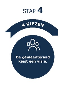 De drie voorlopige visies maakte de gemeente samen met de samenleving. We deden dat in vier stappen. In iedere stap waren er verschillende manieren om mee te doen. Wie wilde meedoen, kon zelf kiezen waar aan mee te doen en met welke stap(pen).