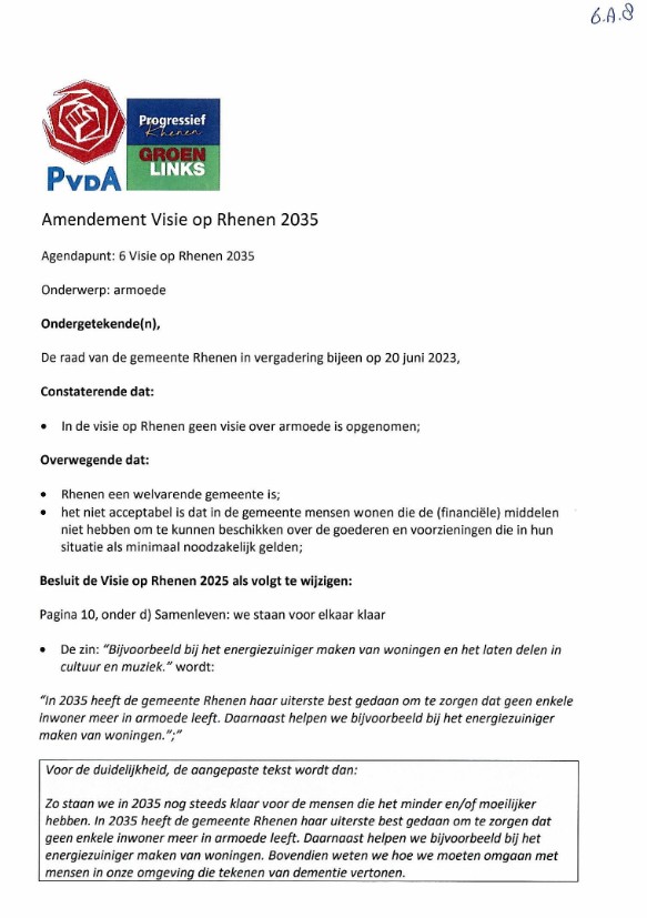 In de Visie op Rhenen kunnen mensen die weinig geld hebben ook meedoen aan een duurzaam leven. Het openbaar vervoer draait gedeeltelijk op vrijwilligers; zo kunnen mensen die het minder hebben hier ook gebruik van maken. En er zijn veel activiteiten waar je aan mee kunt doen, ook voor mensen die het minder hebben. In de Visie op Rhenen staat dat de gemeente Rhenen haar uiterste best heeft gedaan om te zorgen dat in 2035 geen enkele inwoner meer in armoede leeft. Daarnaast helpt de gemeente bijvoorbeeld bij het energiezuiniger maken van woningen en het laten delen in cultuur en muziek.