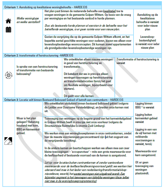 Uit het Stec-rapport volgt dat de Gemeente Gulpen-Wittem inzet op transformatie en herstructurering. In principe voegen we alleen woningen toe op transformatielocaties en locaties voor herstructurering. Daarnaast gelden voor nieuwe woningbouwplannen aanvullende harde eisen.