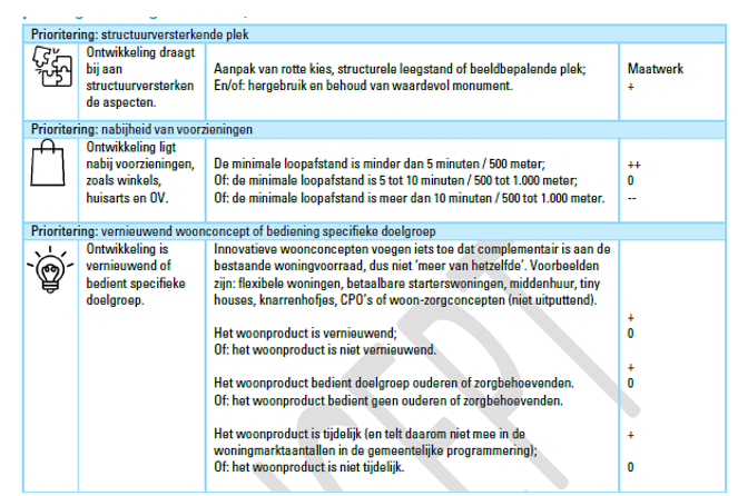 A Afwegingskader om de prioritering van nieuwe woningbouwplannen te bepalen.