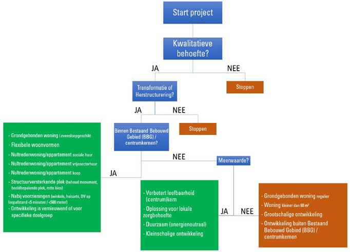 B Prioriteiten sub A weergegeven in een beslisboom waarmee bepaald wordt of een woningbouwproject past binnen de ambities en uitgangspunten grondbeleid en ruimtelijke