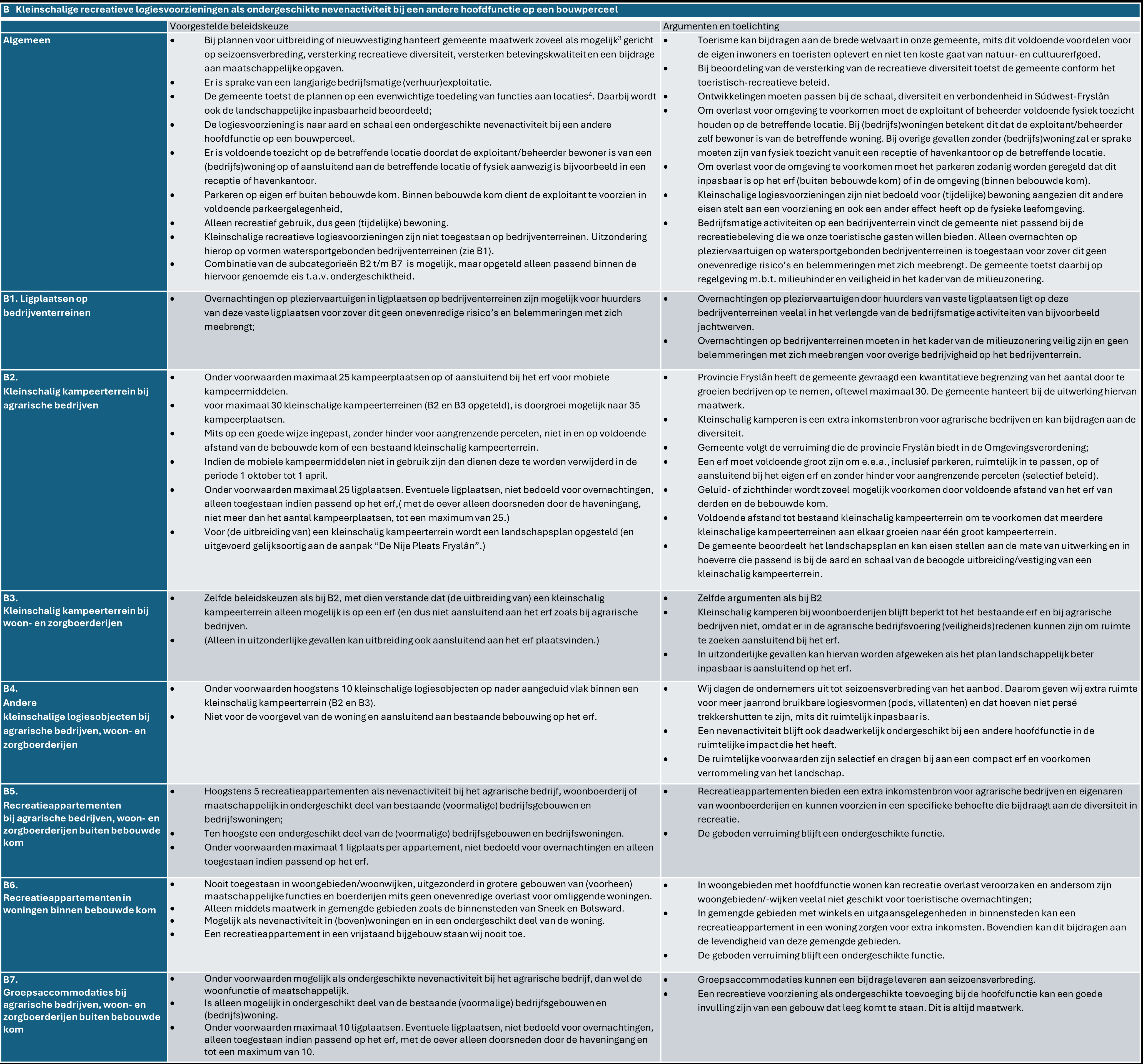 Tenslotte is wat betreft de derde doelstelling ontwikkeling van logiesaanbod voor mensen met een kleine en modale beurs wenselijk. Daarom wil de gemeente de ruimte voor kleinschalige logiesvoorzieningen en -objecten die de Omgevingsverordening Fryslân biedt optimaal benutten.