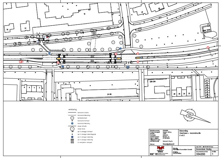 Een en ander zoals opgenomen op de bij dit besluit behorende tekening ‘Bebording Heerbaan – reconstructie 2 vd 2’.