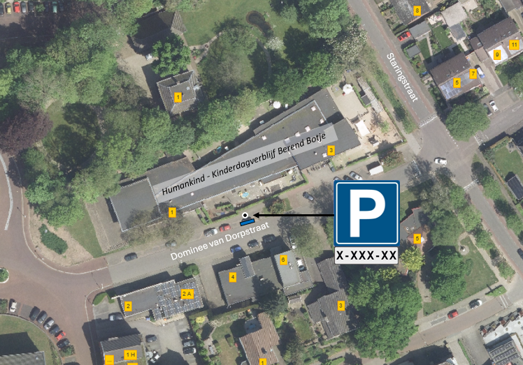 Het toekennen van een doelgroepenparkeerplaats op kenteken voor het busje van de buitenschoolse opvang (BSO). De doelgroepenparkeerplaats wordt gerealiseerd op een bestaand langsparkeervak in de Dominee van Dorpstraat, nabij de locatie van de BSO, op een plek waar veilig in- en uitgestapt kan worden.