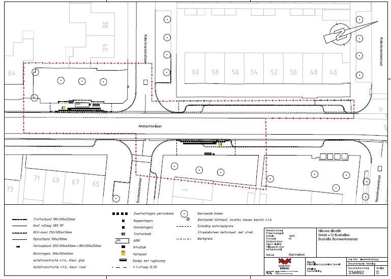 Tekening ‘Bushaltes Bontwerkerstraat’ met tekeningnummer 334892.