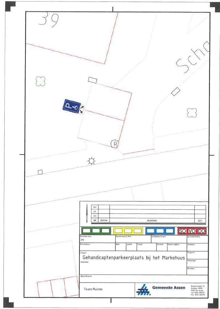 Het is de bedoeling om de ruimte voor deze twee plaatsen te gebruiken voor de gehandicaptenparkeerplaatsen.