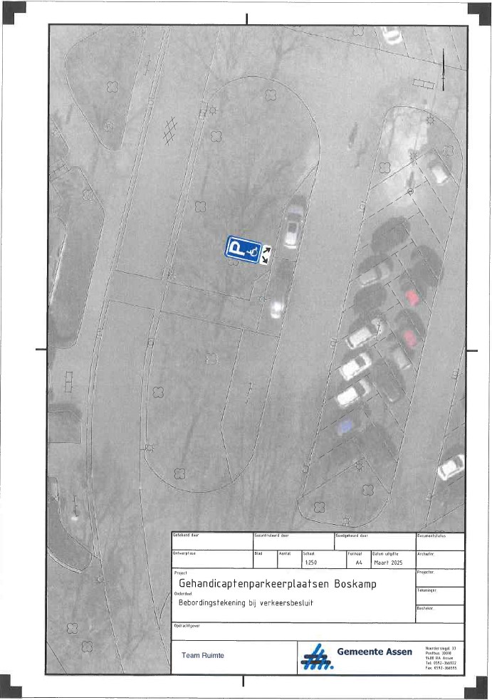 Gelet op de maatschappelijke functie van het crematorium is het zeer aannemelijk dat ook personen met een handicap (of slecht ter been) naar het crematorium komen. Daarom is het gewenst dat er gehandicaptenparkeerplaatsen aanwezig zijn. Daarnaast hanteert de gemeente Assen dat 1 op de 50 openbare parkeerplaatsen als gehandicaptenparkeerplaats ingericht is.