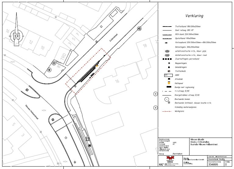Tekening ‘Bushalte Nieuwe Heilaarstraat’ met tekeningnummer 334895.