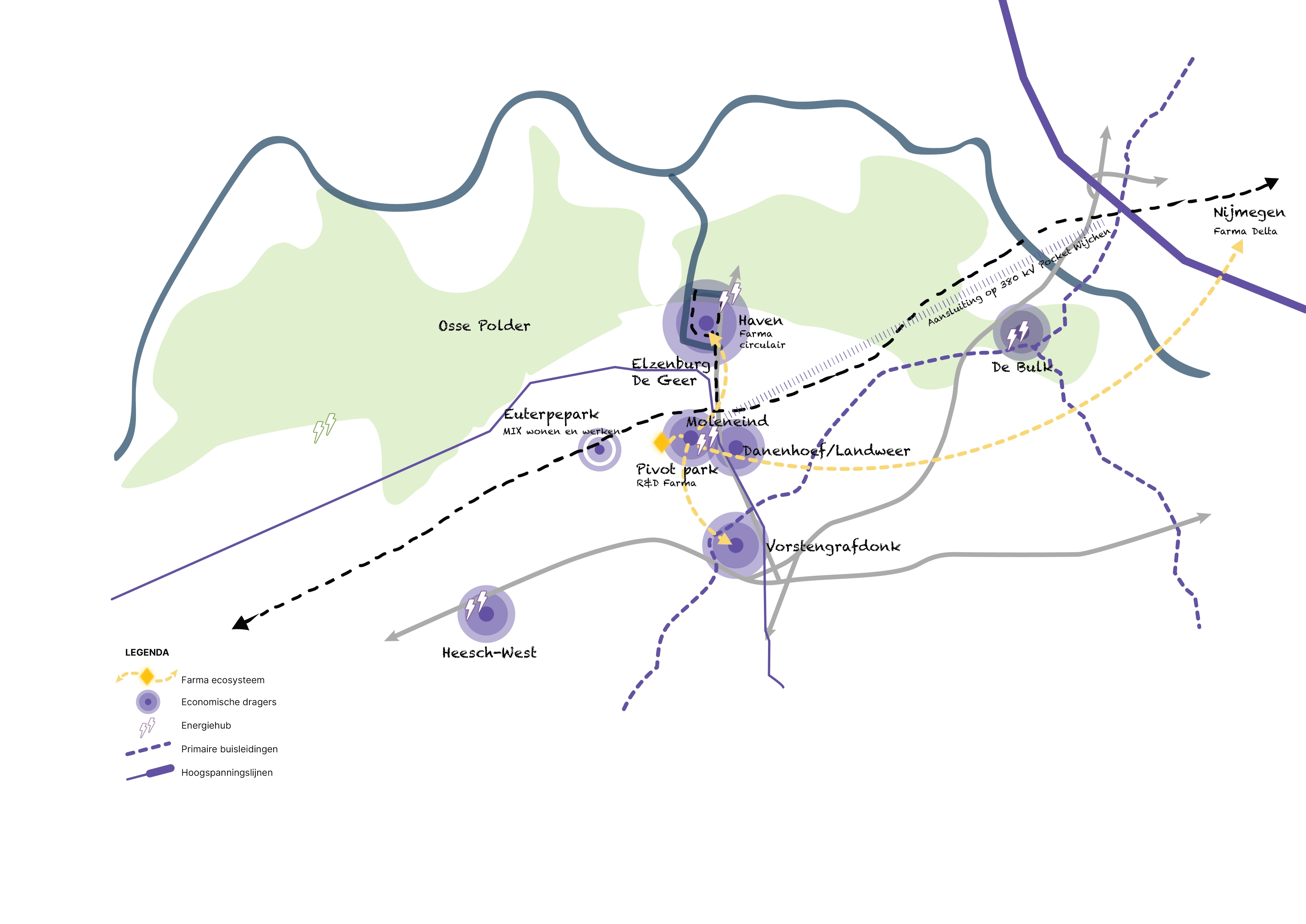 In dit gebied komen veel onderdelen van de grote opgaven in ons buitengebied samen: de transitie van de landbouw, wateropgave (zowel kwalitatief als kwantitatief) en verbetering van bodemkwaliteit en biodiversiteit. De komende jaren zullen in het poldergebied naar verwachting veel boeren stoppen. Hun gronden zijn en blijven waardevol voor landbouw en willen wij daarvoor beschikbaar houden. Langs de randen van de oostelijke polder en in de nabijheid van de dorpen is meer ruimte voor verbreding of omschakeling naar andere verdienmodellen, die ten goede komen aan de gezondheid van de inwoners, natuurontwikkeling en recreatieve ontwikkeling in het gebied.