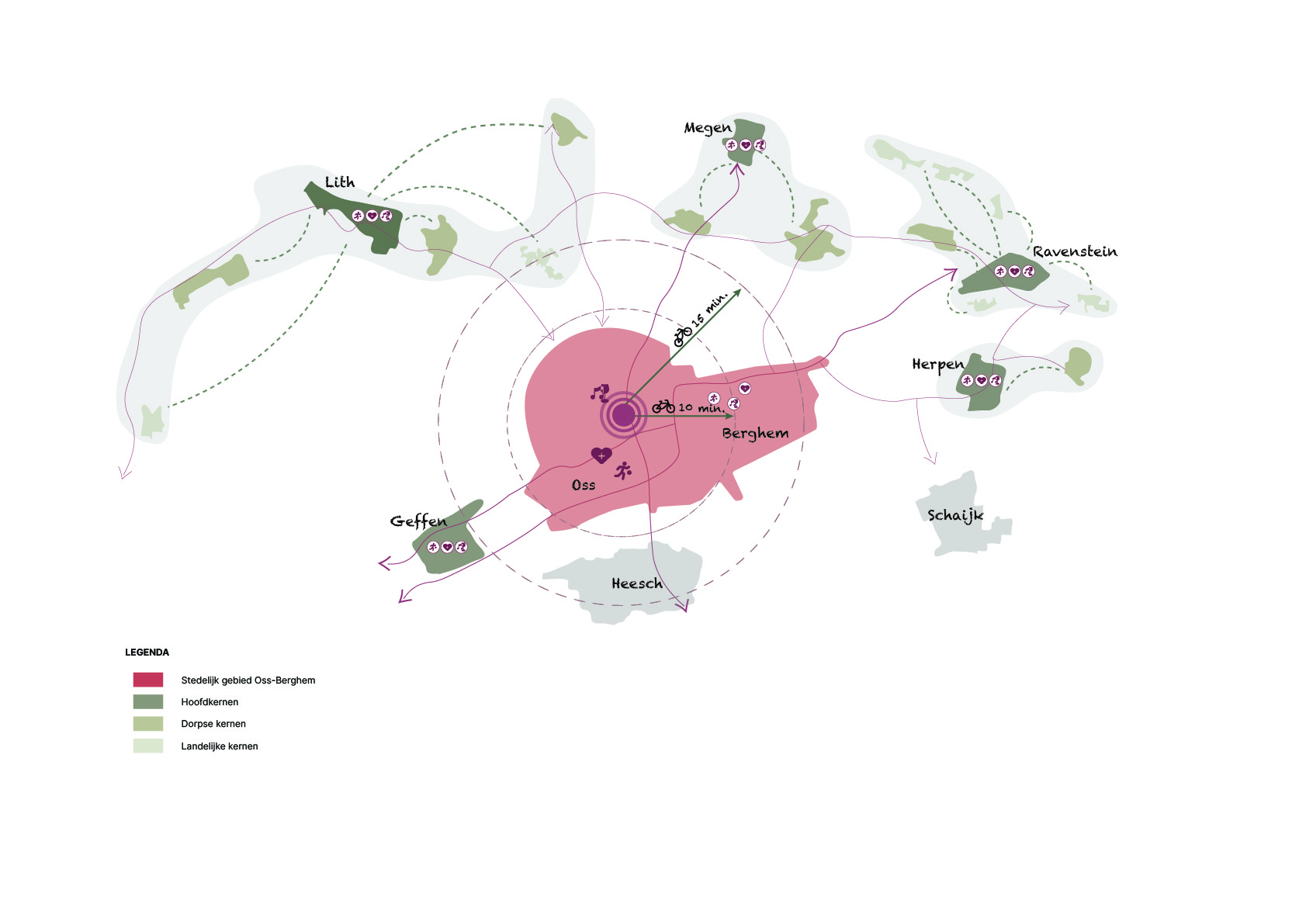 Het stedelijk gebied Oss–Berghem vormt een compleet en veelzijdig stedelijk hart van de regio. Als middelgrote gemeente, centraal gelegen tussen grootstedelijke centra Nijmegen, ‘s-Hertogenbosch en Eindhoven. Met de stad Oss als centrum van de gemeente en het ommeland. Een stedelijk gebied met een compleet pakket aan stedelijke voorzieningen (winkels, sport, zorg, cultuur) en met een grote diversiteit aan aantrekkelijke woonmilieus en werkgebieden.