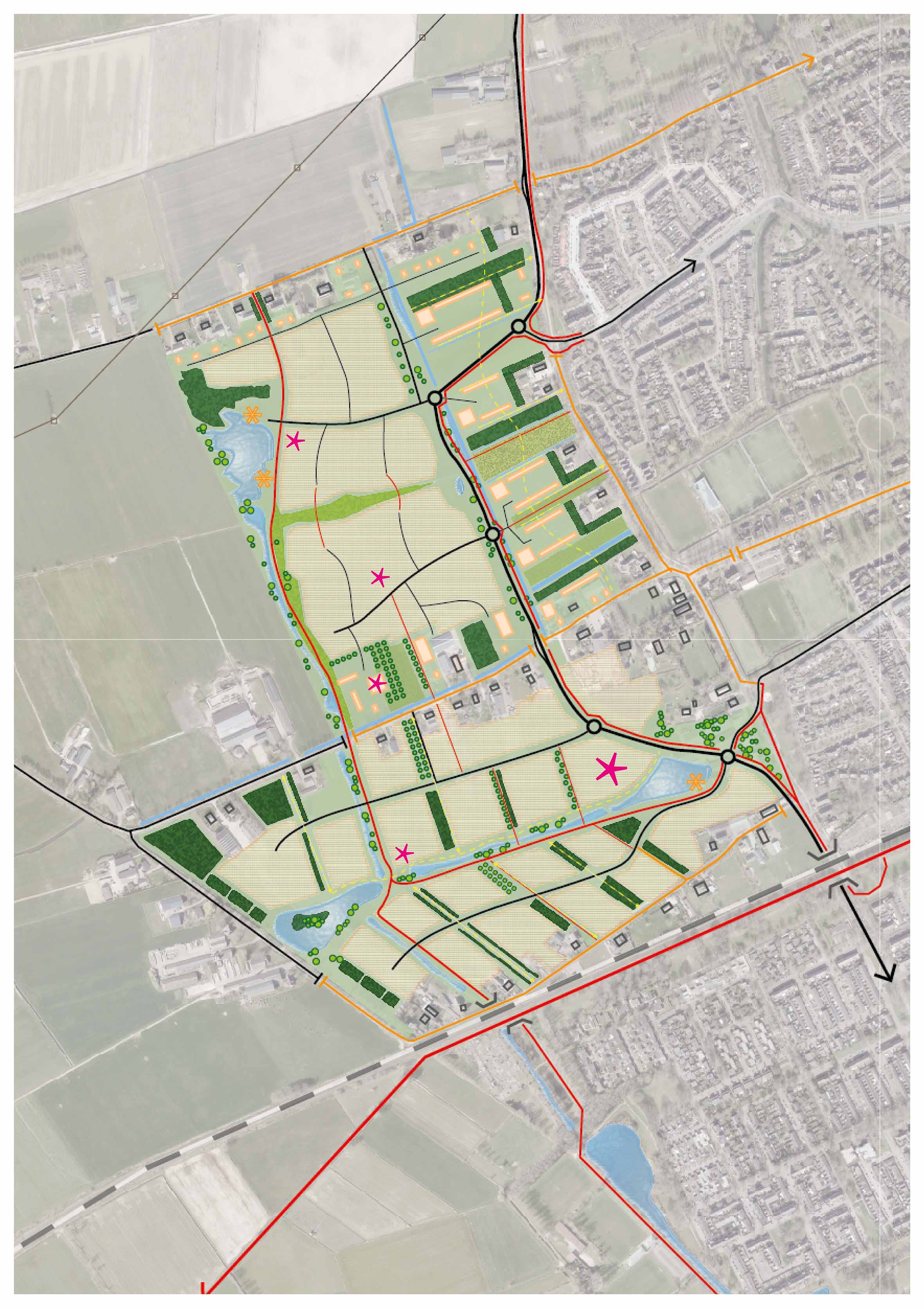 Bij ontwikkeling of transformatie van agrarische bedrijven hebben we oog voor een gezond woon- en leefklimaat in de dorpen. In het geval van stoppende agrarische bedrijven benaderen we het vraagstuk met het oog op kansen en mogelijkheden die het biedt voor behoud en transitie van de landbouw, vitaliteit van het buitengebied en een goed ondernemersklimaat. Dit betekent voor de Oostelijke polder dat we ruimte bieden aan koppelkansen voor verbreding van de landbouw, verbinding tussen stad en platteland of klimaatadaptatie. Grootschalige- of solitaire woningbouw en intensieve recreatie en toerisme passen hier niet.