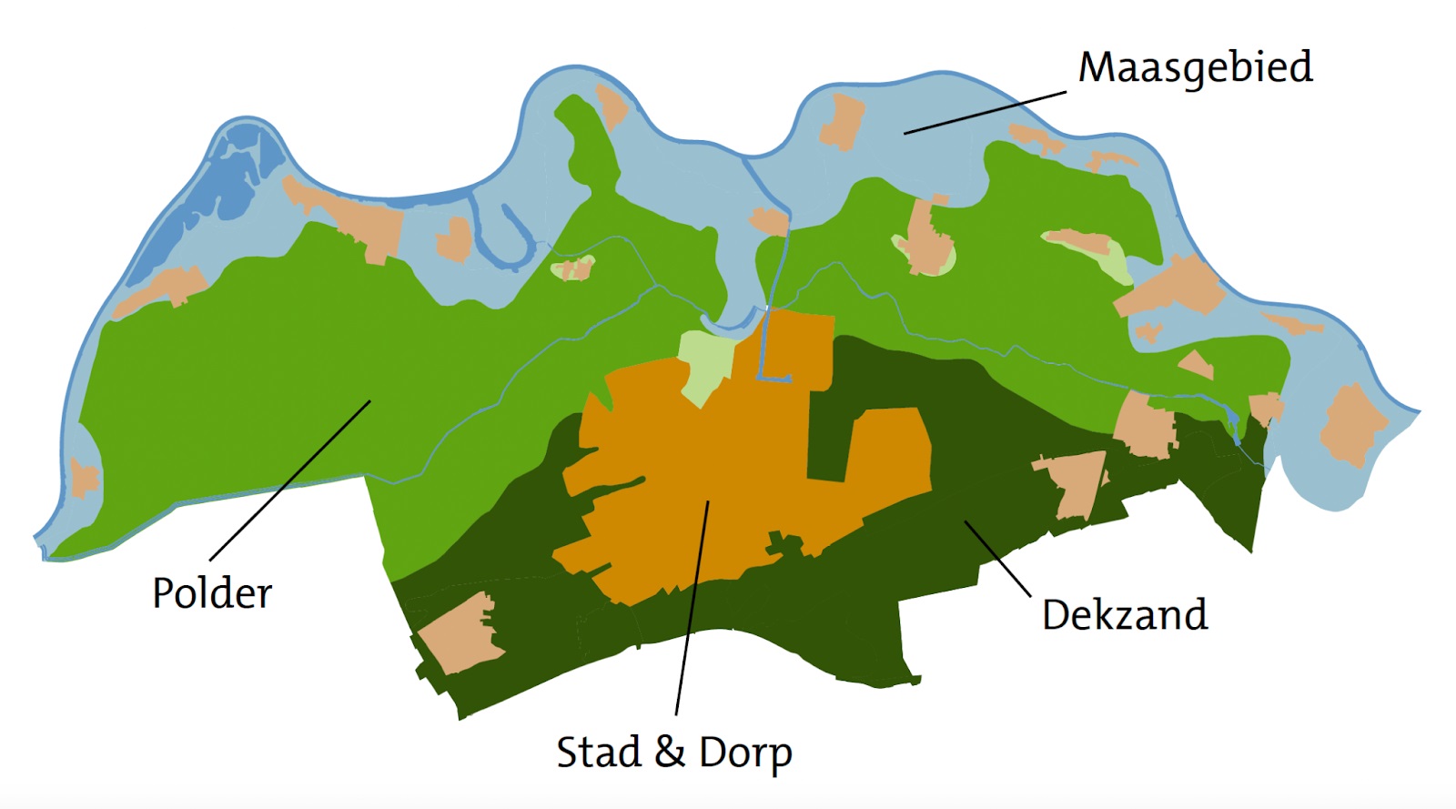 Aan de zuidrand van het stedelijk gebied zetten we in op de ontwikkeling van een kwalitatief hoogwaardig landschap dat dient als schakel tussen de stad en natuurgebied De Maashorst. Binnen dit gebied krijgen landschapsverbetering, een duurzaam perspectief op de landbouw, het slechten van barrières door infra of bebouwing, recreatie en toerisme en het verbeteren van groene dooradering een plek.