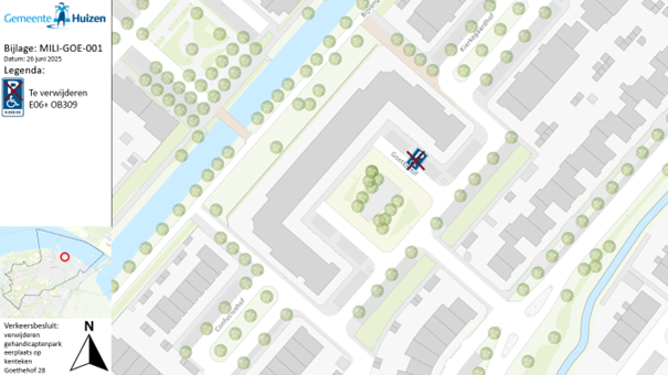 Verkeersbesluit verwijderen gehandicaptenparkeerplaats op kenteken Goethehof 28 te Huizen