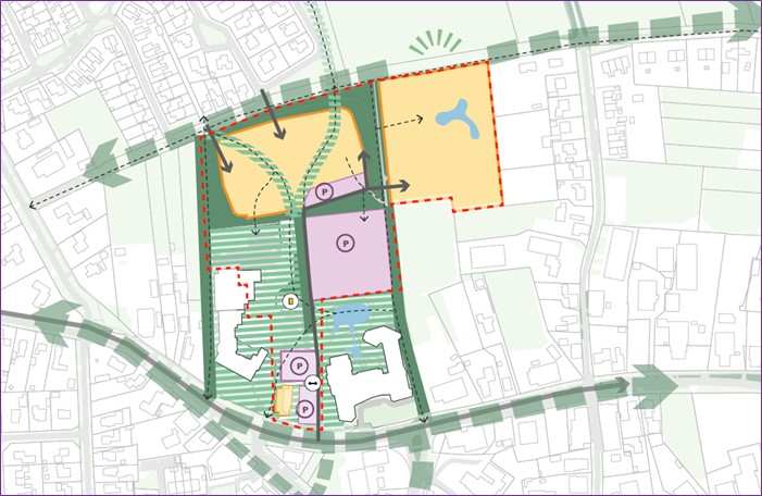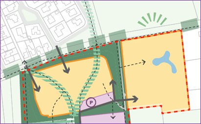 Daarnaast maken we het ook mogelijk om vanaf de Taxuslaan de woongebieden in te rijden. Op die manier wordt de druk op de omliggende wegen verdeeld en wordt de groene fiets/wandelstructuur zo min mogelijk doorsneden.