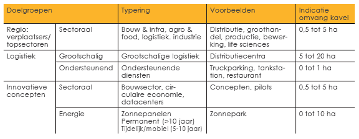 Het stedenbouwkundig plan is speciaal op middelgrote tot zeer grootschalige bedrijven gericht. De robuuste maatvoering van de bedrijven bepaalt de verkaveling. Kavels met een aaneengesloten omvang tot ruim 20 hectare zijn mogelijk op dit terrein. Ook enkele kleinere kavels die gericht zijn op ondersteunende functies bij grootschalige logistiek of energieconcepten zijn mogelijk gericht. De robuuste maatvoering van de bedrijven bepaalt de verkaveling en ontsluiting van de kavelzones. Kavels met een aaneengesloten omvang tot ruim 20 hectare zijn mogelijk op dit terrein. Ook enkele kleinere kavels die gericht zijn op ondersteunende functies zijn mogelijk.