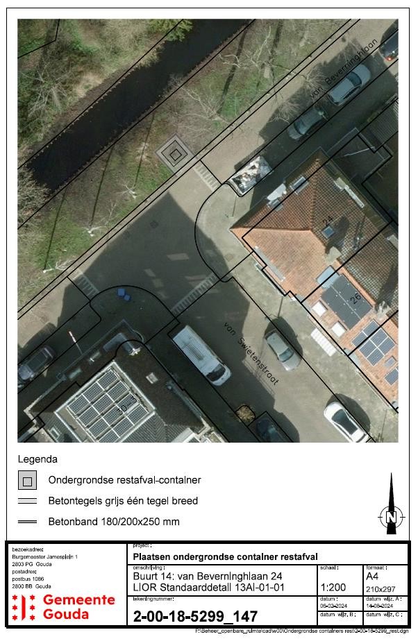 Het college heeft het voornemen om op grond van artikel 10.26, eerste lid, onder a, van de Wet milieubeheer en artikel 4, tweede lid, van de Afvalstoffenverordening Gouda 2011, de volgende locaties aan te wijzen. De locaties worden aangeduid met het dichtstbijzijnde huisadres. Op alle locaties is het college voornemens om een ondergrondse restafval container te plaatsen naast een bestaande afvalcontainer als deze aanwezig is.
