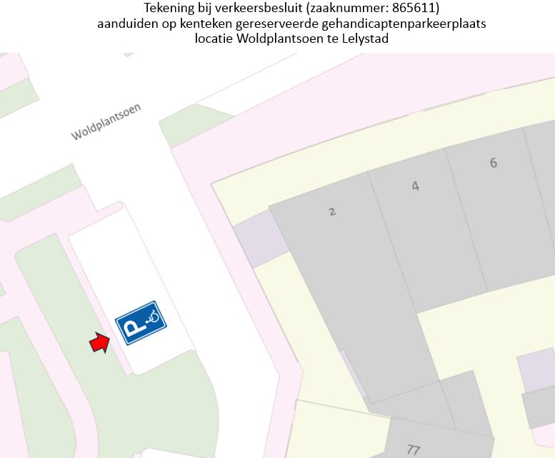Verkeersbesluit aanduiden op kenteken gereserveerde gehandicaptenparkeerplaats locatie Woldplantsoen te Lelystad