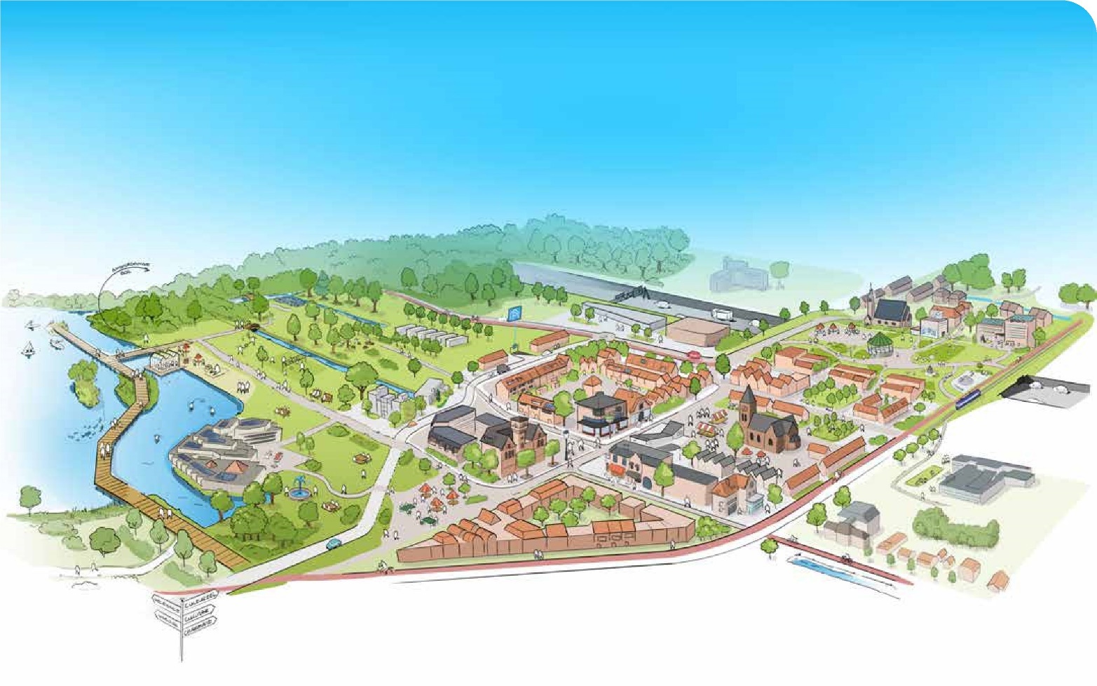 De afbeeldingen in deze gebiedsvisie zijn een artistieke interpretatie of referenties en dienen niet te worden beschouwd als een werkelijke weergave. De inhoud is uitsluitend bedoeld voor illustratieve doeleinden. Wij aanvaarden geen aansprakelijkheid voor enige misverstanden of schade die voortvloeit uit het gebruik van deze afbeeldingen.