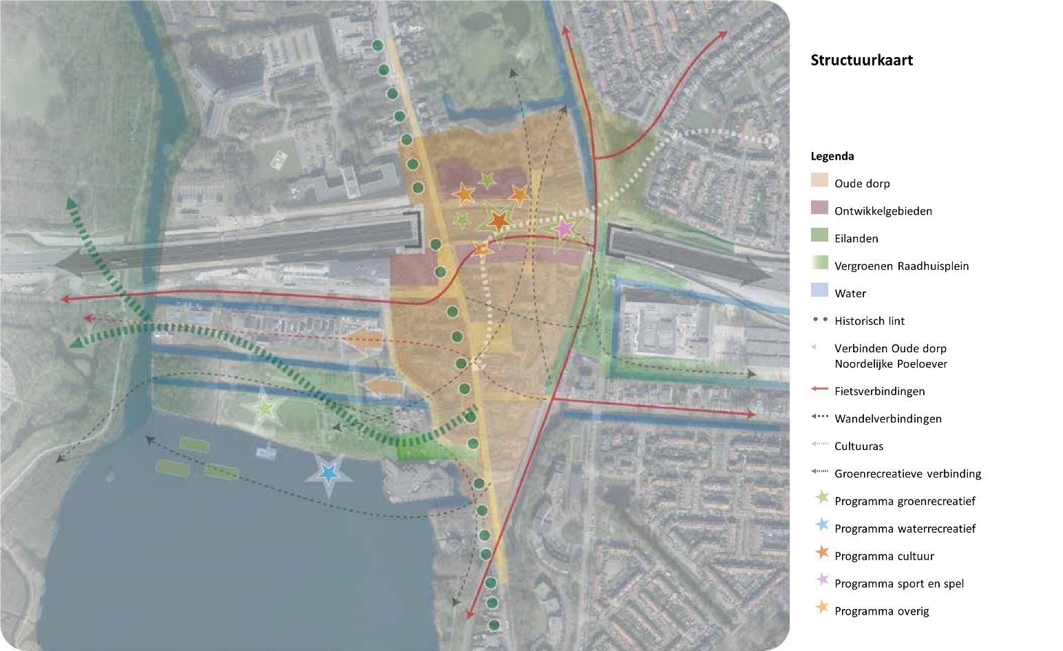 Met de realisatie van een overkapping over de A9 en de impuls op de Noordelijke Poeloever, ontstaan kansen om het Oude Dorp en zijn omgeving weer een bijzondere plek in de stad te laten zijn, waar ruimte is voor ontmoeten, verbeelden en vormgeven. Deze kansen willen we benutten om de volgende doelen te bereiken: