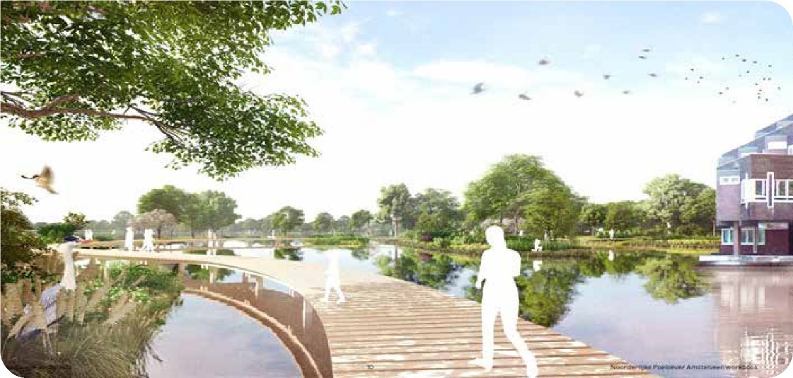 Ambitie De Noordelijke Poeloever kan door het verbeteren van de recreatieve mogelijkheden van land en water, de waterkwaliteit en de natuur bijdragen aan een gezonde woon- en werkomgeving. Het wordt een belangrijke groen recreatieve plek op schaal van Amstelveen. Kleinschalige, ondersteunende voorzieningen, passend bij de natuurwaarden en het gebiedstype verhogen de vitaliteit van het gebied en het Oude Dorp. Een hogere verblijfs- en beeldkwaliteit van de Poeloever en het Raadhuisplein dragen in belangrijke mate bij aan een aantrekkelijk Oude Dorp, het Amsterdamse Bos en de stad als geheel.