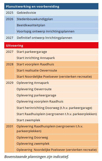 In 2026 liggen er definitieve inrichtingsplannen voor verschillende deelprojecten. Dit wordt voorafgegaan door het opstellen van voorlopige inrichtingsplannen, Bovenstaande planningen zijn indicatief. waarop geparticipeerd kan worden. In de eerste helft van 2026 zal voor een aantal projecten de bestek- en aanbestedingsfase plaatsvinden op basis van definitieve inrichtingsplannen. Bijvoorbeeld voor het inrichten van het Annapark.
