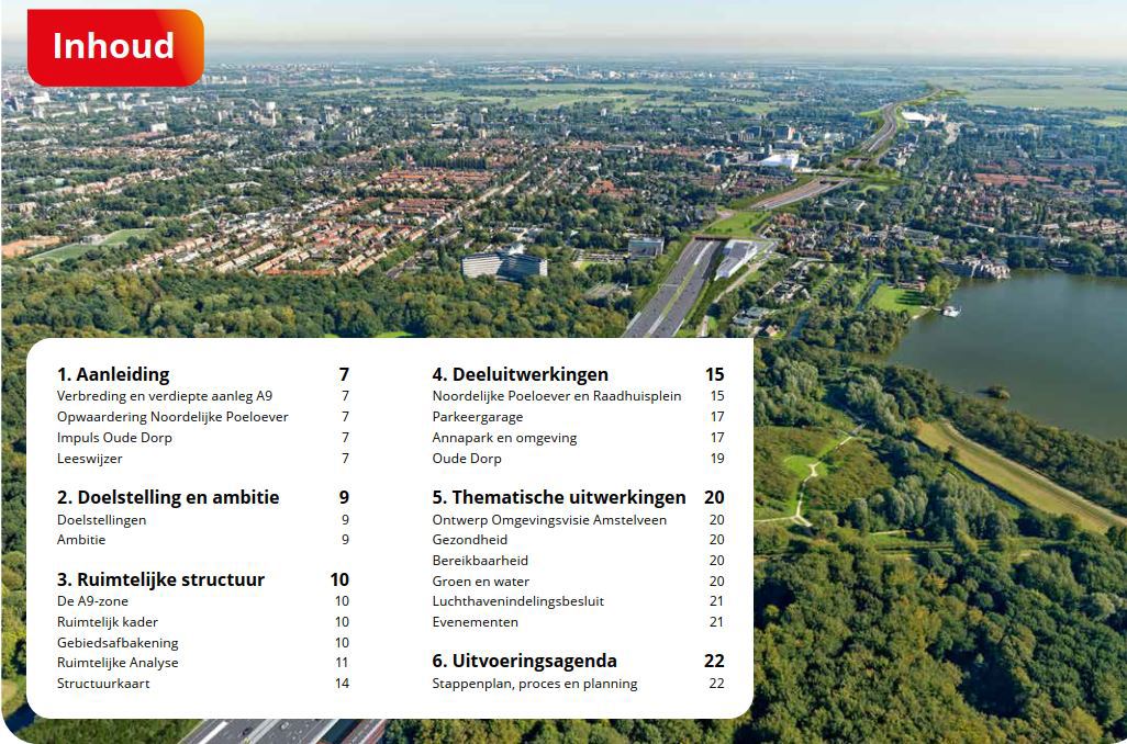 Met de ontwikkeling van de A9 en de komst van een overkapping bij het Oude Dorp opent zich een wereld aan mogelijkheden. Er ontstaat niet alleen ruimte voor een beter verkeerssysteem met goede verbindingen, maar ook voor groen, bewegen, cultuur, en recreatie, met toegevoegde waarde voor Amstelveen. De verschillende ontwikkelingen kennen een eigen tijdspad en verschillende kenmerken. Maar door deze in samenhang te benaderen, ontstaat een unieke kans om het Oude Dorp en zijn omgeving meer te laten worden dan de som der delen.