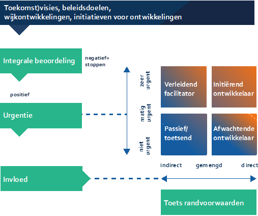 We kunnen echter ook zelf de wijziging van de bestemming verzorgen op basis van de beoogde maatschappelijke doelen en de bijbehorende ruimtelijke programmering. We nemen hierover een besluit na zorgvuldig doelen en ontwikkelmogelijkheden te hebben afgewogen.