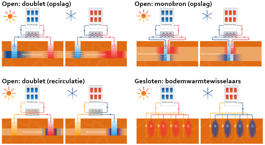 Figuur 3.2 | Schematische weergave verschillende varianten van bodemenergie