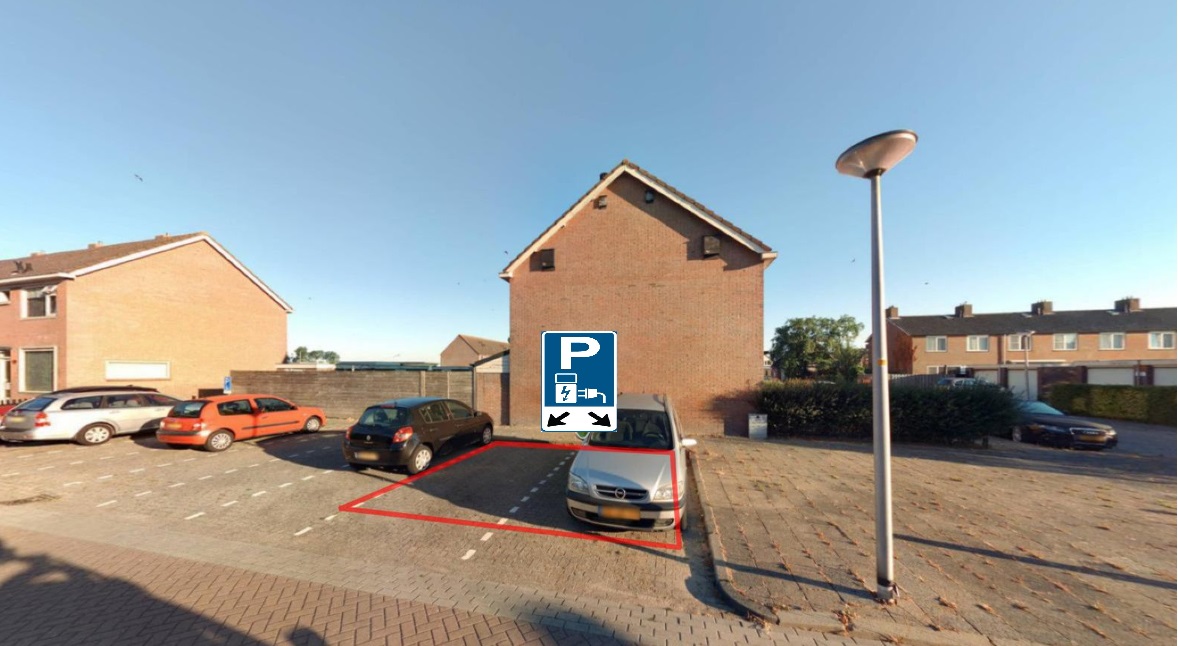 De laadpaal wordt geplaatst in het midden tussen twee parkeerplaatsen. Bij het kiezen van een nieuwe oplaadlocatie dient rekening gehouden te worden met de volgende criteria: