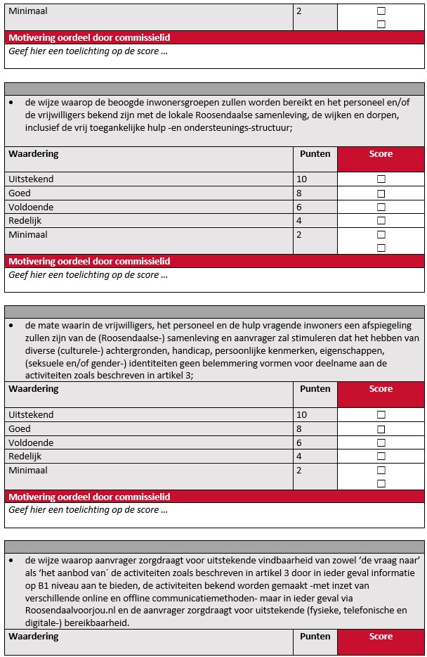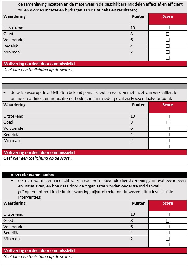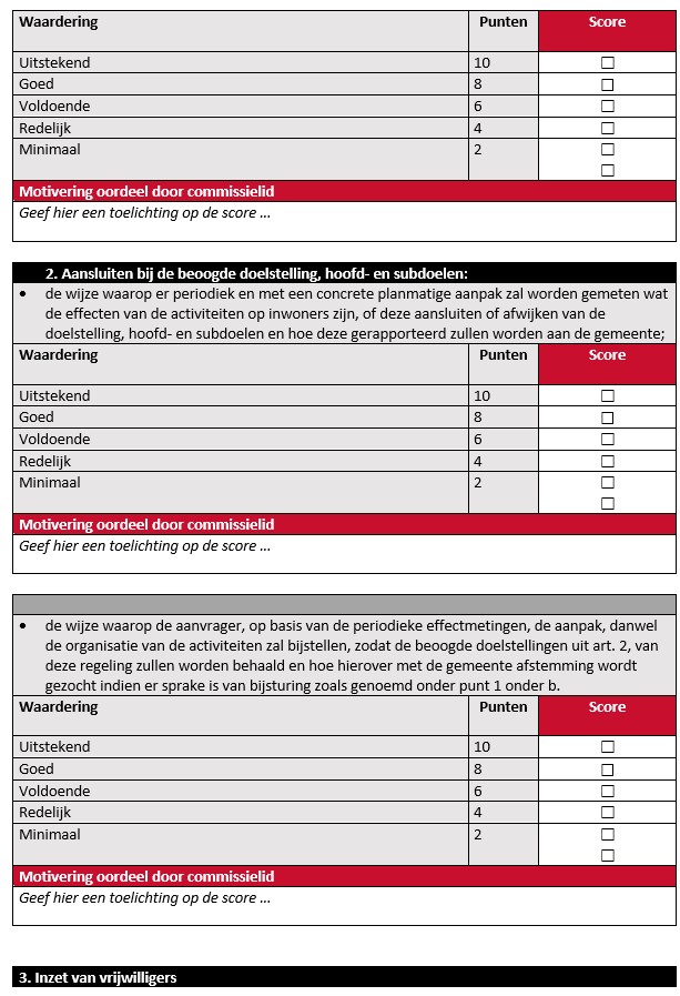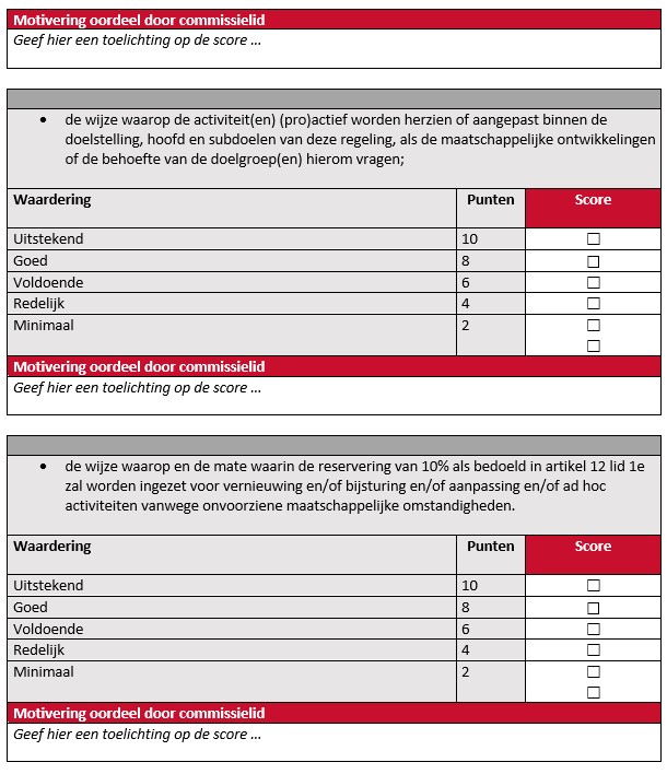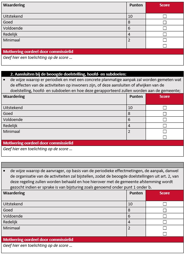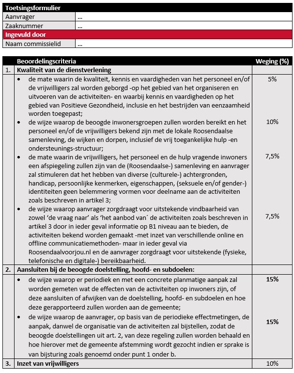 Beoordeling en afweging van subsidieaanvragen door de adviescommissie vindt per commissielid plaats via onderstaand toetsingsformulier.