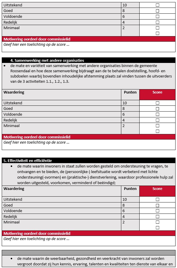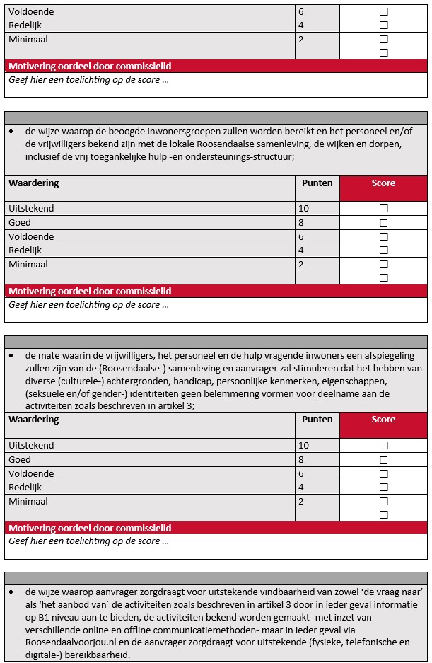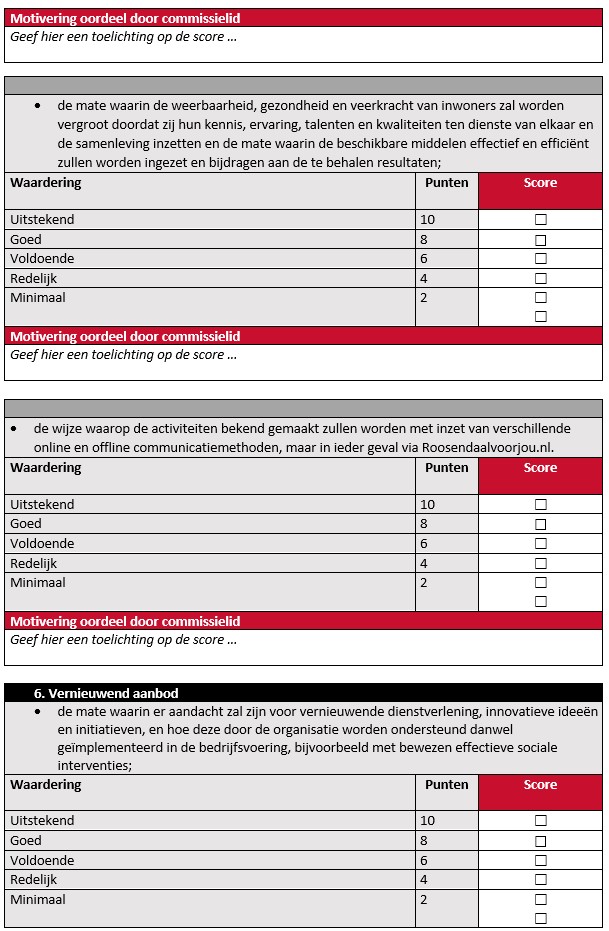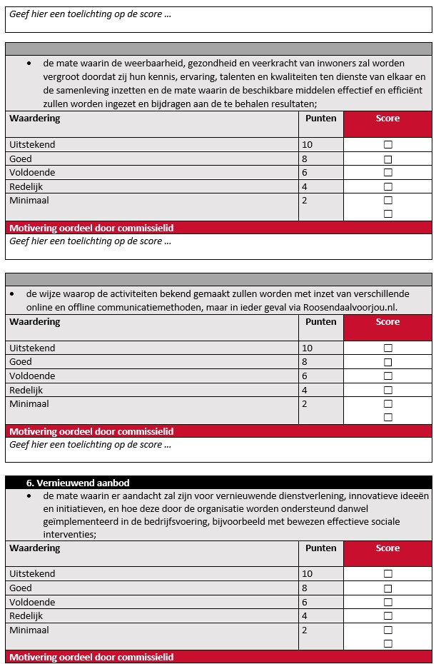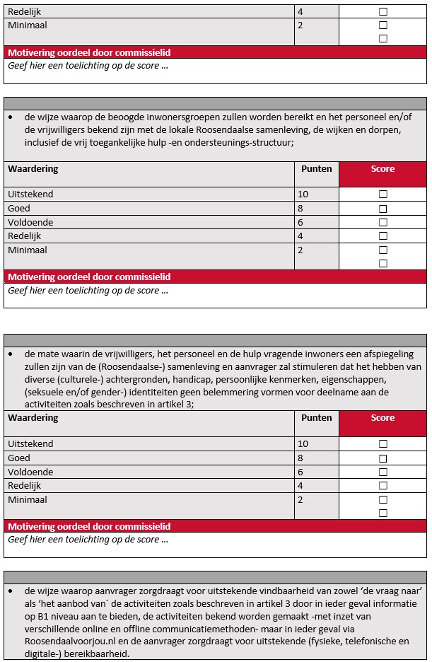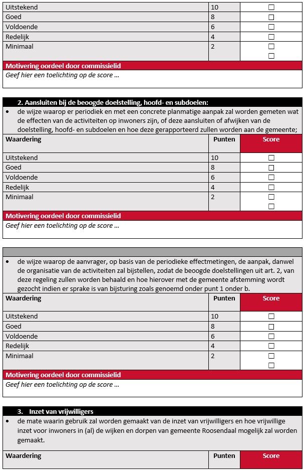 Beoordeling en afweging van subsidieaanvragen door de adviescommissie vindt per commissielid plaats via onderstaand toetsingsformulier.