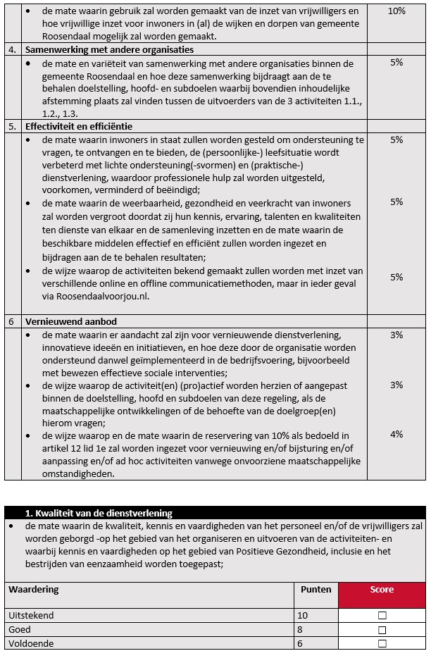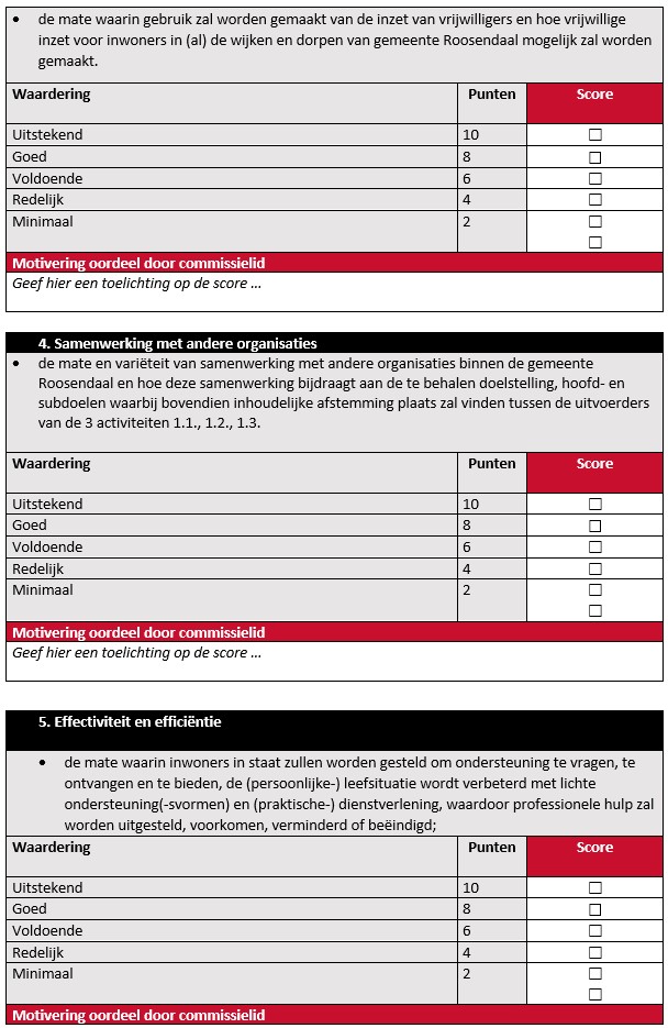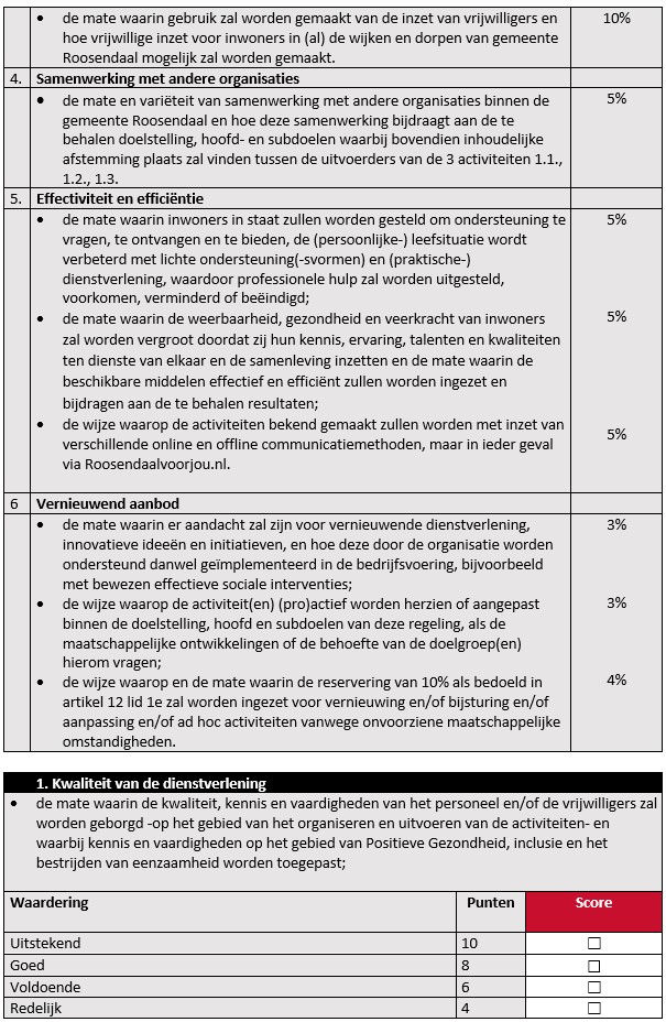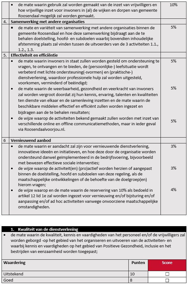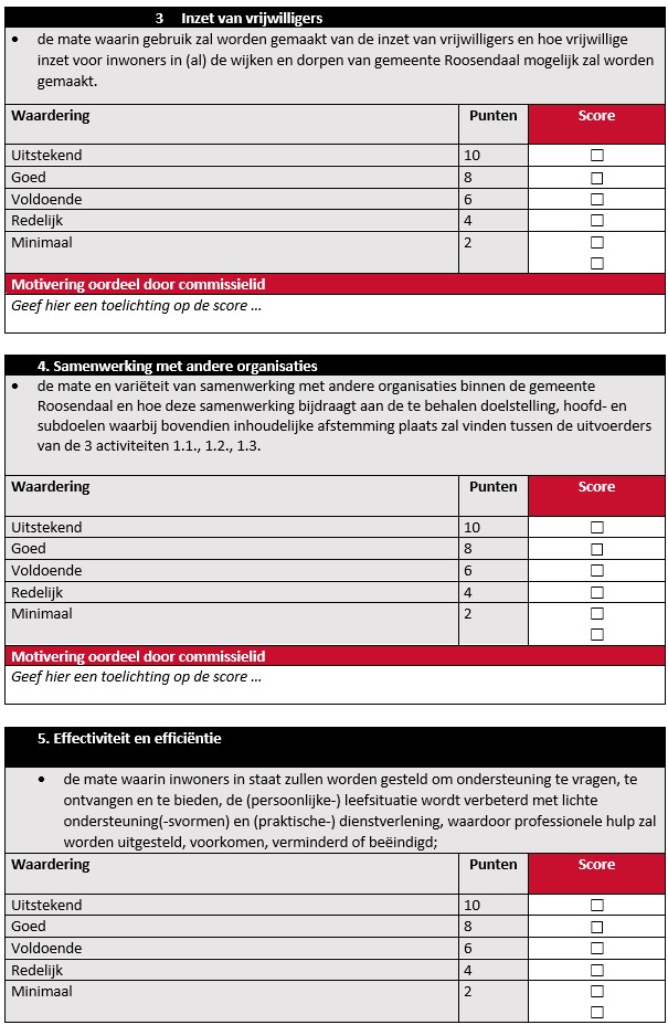 Bijlage 3: Individueel beoordelingsformulier tender Subsidieregeling Praktische ondersteuning en dienstverlening door vrijwilligers. Activiteit 1.3. Maatjescontact bij taalvaardigheid, rouwverwerking, geldzaken en eenzaamheid