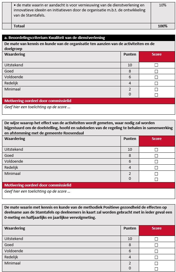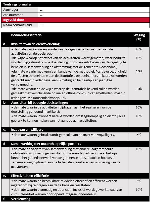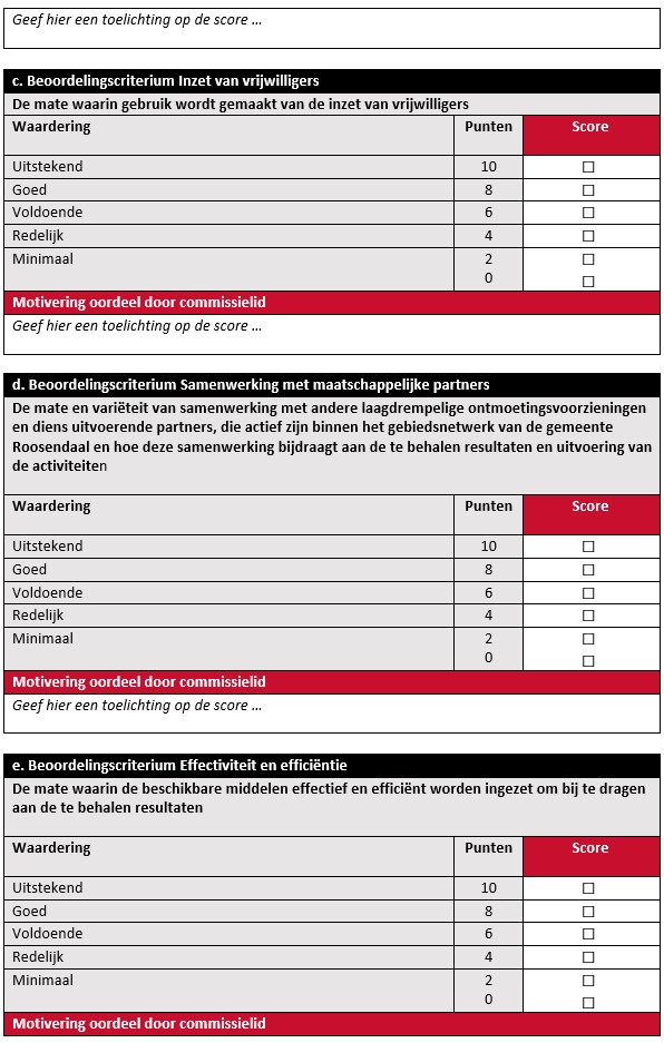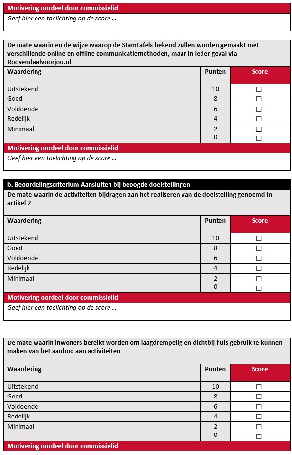Ieder commissielid vult individueel per aanvraag een beoordelingsformulier in.
