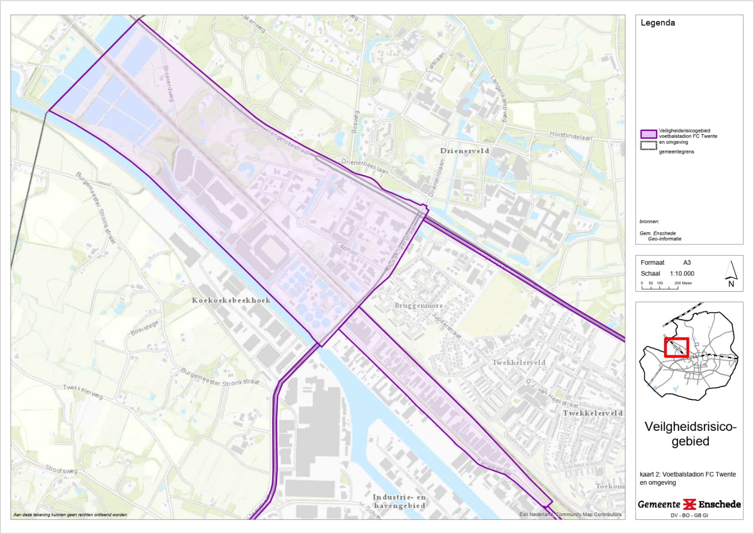 Het voetbalstadion van FC Twente en omgeving, zijnde het gebied omsloten door de gemeentegrens van Enschede, de Hengelosestraat, de Auke Vleerstraat en het Twentekanaal, en het gebied omsloten door de Kanaalstraat en de Lonnekerbrugstraat, met inbegrip van genoemde straten voor zover grenzend aan het omsloten gebied;