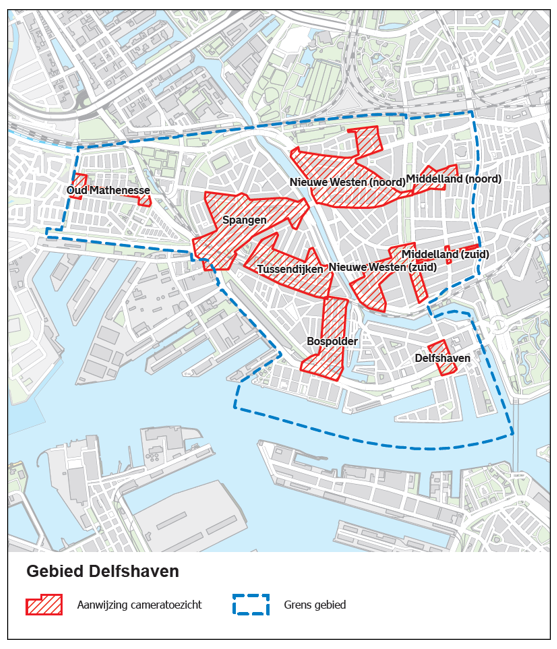 De burgemeester kan overeenkomstig artikel 151c van de Gemeentewet en artikel 2:77 van de Algemene plaatselijke verordening Rotterdam 2012 besluiten tot plaatsing van camera’s ten behoeve van het toezicht op een openbare plaats in het kader van de handhaving van de openbare orde. Driejaarlijks worden alle camerawijken in de gemeente Rotterdam geëvalueerd. In de evaluatie cameratoezicht 2025 is op basis van een analyse en adviezen van de basisteams van de politie, wijkraden en dorpsraad vastgesteld dat het continueren van cameratoezicht in de in artikel 1 genoemde gebieden rechtmatig is. De duur van de aanwijzing en de omvang van de gebieden zijn proportioneel in relatie tot het beoogde legitieme doel. Omdat vóór de invoering van cameratoezicht altijd (voor de privacy) lichtere maatregelen zijn ingezet en het instrument onderdeel uitmaakt van een pakket aan veiligheidsmaatregelen, is de inzet subsidiair te noemen. Aan de kenbaarheid van cameratoezicht wordt invulling gegeven door geplaatste borden aan de randen van de camerawijken. Daarnaast worden bewoners en ondernemers schriftelijk geïnformeerd bij wijzigingen in het cameragebied en vindt publicatie plaats op Overheid.nl.