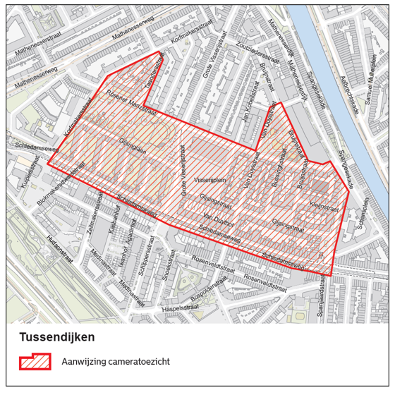 Kaart 4.5: detailkaart CBS-buurt Tussendijken behorende bij de overzichtskaart van cameratoezichtgebied Delfshaven