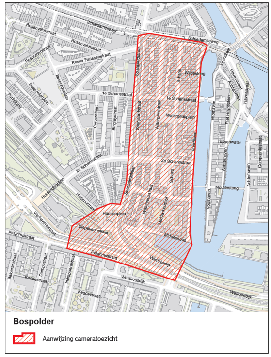 Kaart 4.6: detailkaart CBS-buurt Bospolder behorende bij de overzichtskaart van cameratoezichtgebied Delfshaven