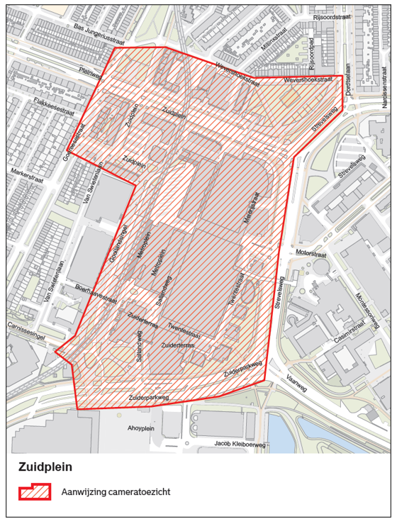Kaart 6.4: detailkaart CBS-buurt Zuidplein behorende bij de overzichtskaart van cameratoezichtgebied Charlois
