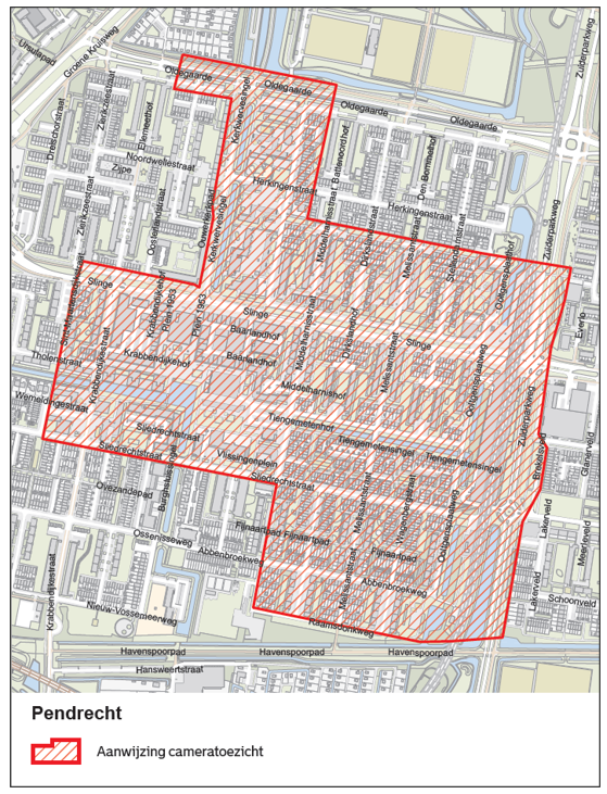 Kaart 6.6: detailkaart CBS-buurt Pendrecht behorende bij de overzichtskaart van cameratoezichtgebied Charlois