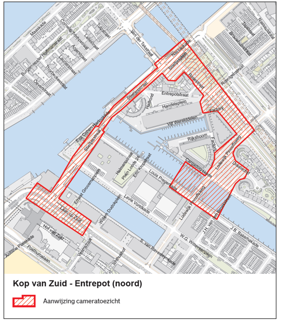 Kaart 7.1: detailkaarten CBS-buurt Kop van Zuid – Entrepot behorende bij de overzichtskaart van cameratoezichtgebied Feijenoord