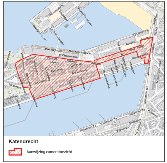 Kaart 7.3: detailkaart CBS-buurt Katendrecht behorende bij de overzichtskaart van cameratoezichtgebied Feijenoord