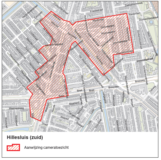 Kaart 7.6: detailkaarten CBS-buurt Hillesluis behorende bij de overzichtskaart van cameratoezichtgebied Feijenoord