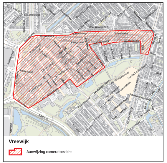 Kaart 7.7: detailkaart CBS-buurt Vreewijk behorende bij de overzichtskaart van cameratoezichtgebied Feijenoord